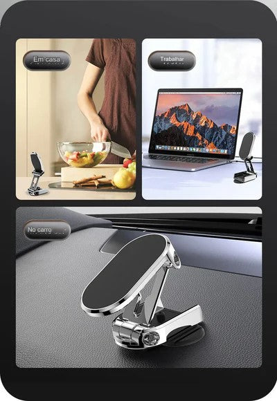 O design universal do Suporte Magnético garante que ele funcione perfeitamente com qualquer modelo de celular, oferecendo máxima praticidade.